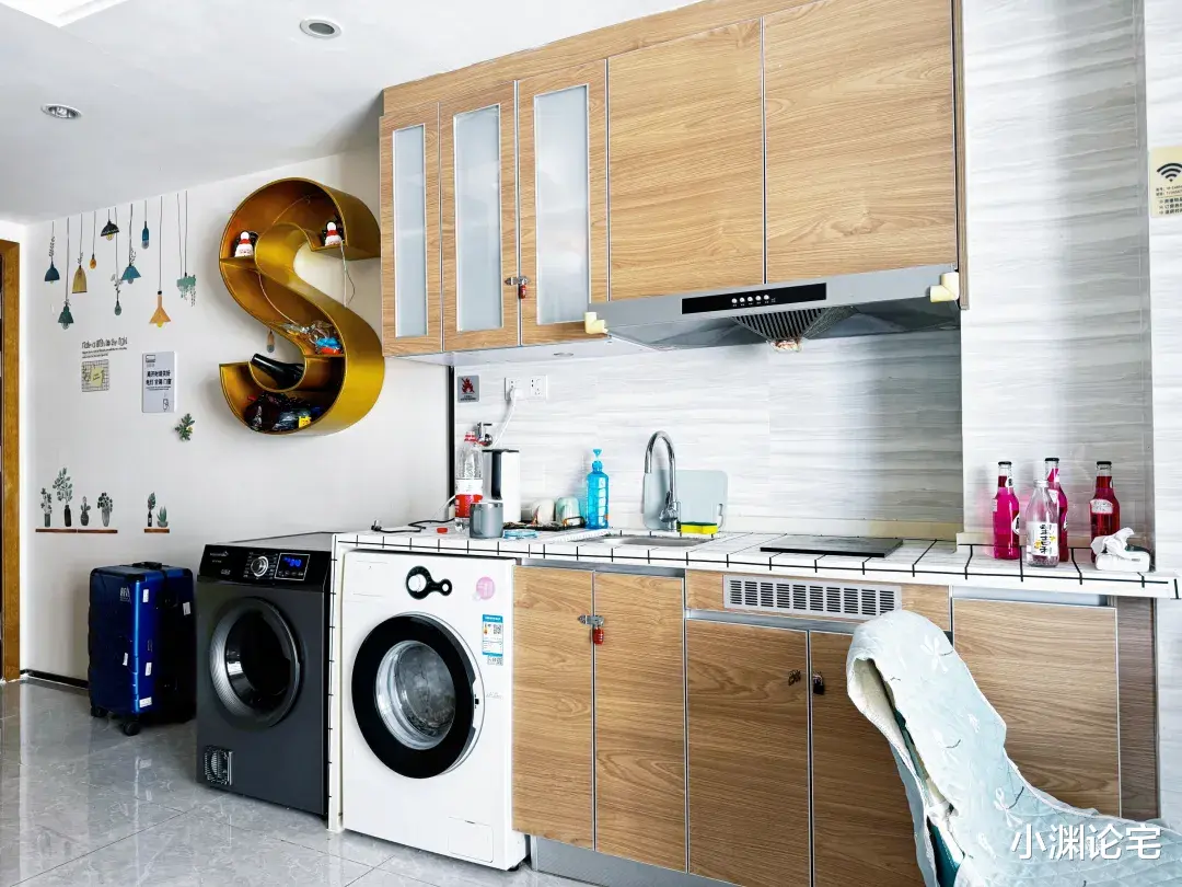 ③洗衣机工作时会晃动,影响橱柜的使用寿命,还可能会晃倒橱柜里的瓶瓶罐罐。