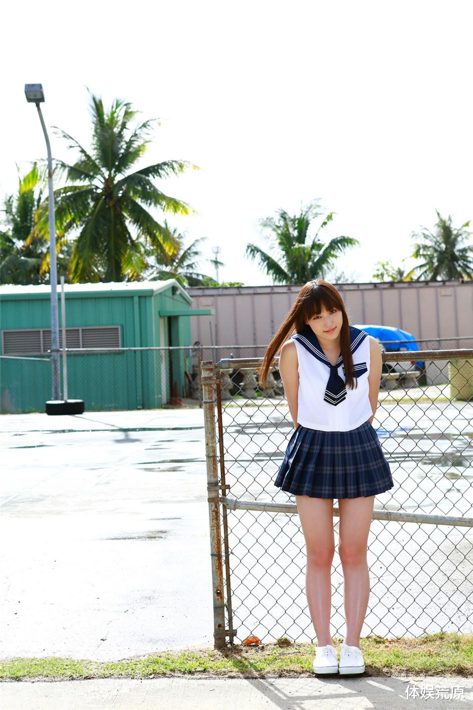 百褶裙在荒无人烟的地方自由的摆动着。她穿着学生的服装,然后下面搭配的是百折裙,上面是一件衬衫学生服,非常的可爱,也非常的