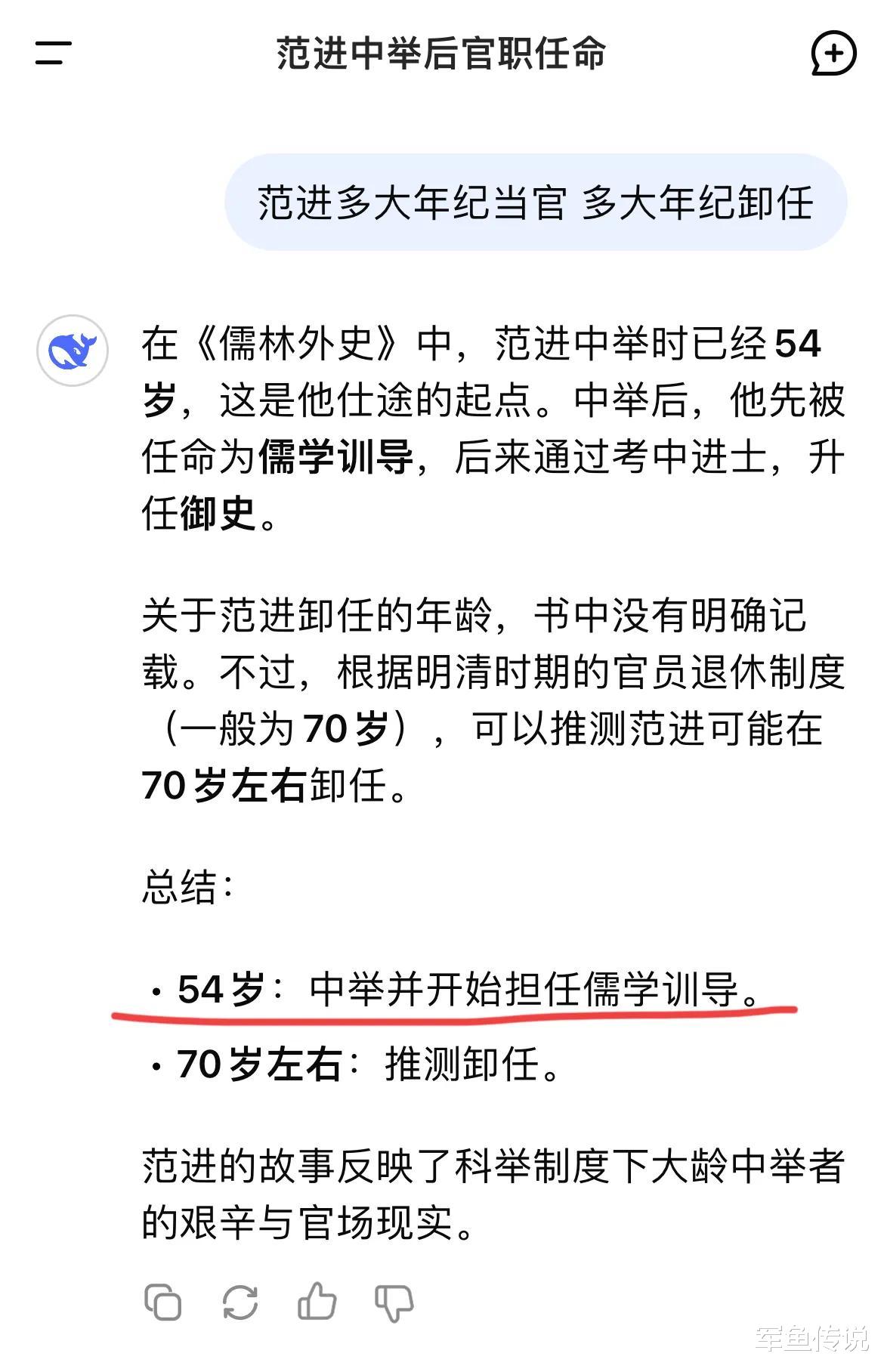 出于好奇,我DeepSeek了范进的相关资料,最终,我发现范进才是大赢家,而我却是可笑之人。