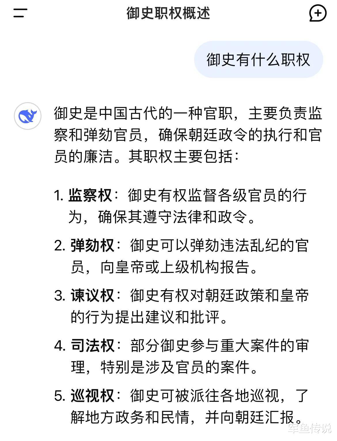1. **监察权**:御史有权监督各级官员的行为,确保其遵守法律和政令。