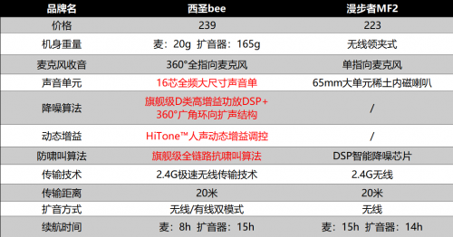 西圣、漫步者小蜜蜂扩音器哪个好?下面给大家展示的是两款扩音器的参数表,能够直观地对比它们在配置方面的表现是怎样的: