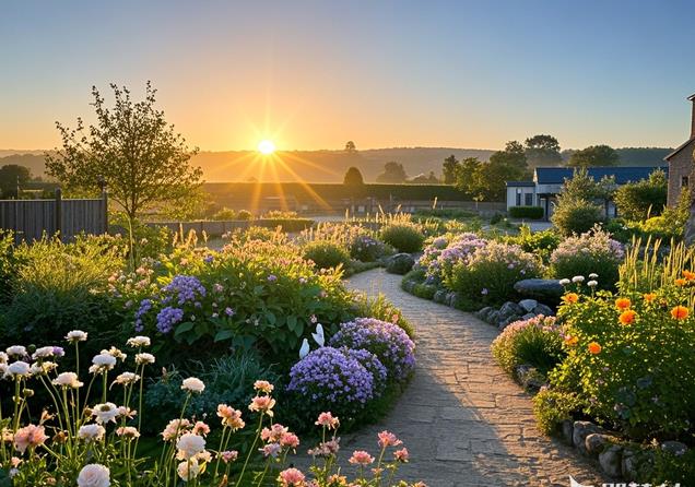 傍晚时分,当夕阳洒在这片花园上,一切都变得温柔起来。