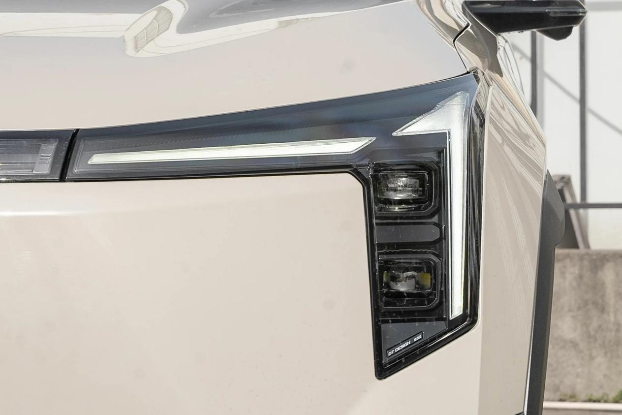 车身侧面采用贯穿式腰线设计,前后圆形轮拱搭配黑色塑料装饰营造出硬朗的多边形样式,配备半隐藏式门把手,兼顾便利性和低风阻,18英寸动能护盾轮毂有着不错的机甲美感,A/B柱等位置都采用隐藏式设计,C柱位置做了横条装饰,整体呈现出悬浮顶的效果,看上去比较时尚。车尾的贯穿式LED尾灯由像素点阵排列构成三角形状,类似能量晶塔,夜晚点亮之后具有较高的辨识度。与中国国家地理联合推出了五大自然灵感配色供消费者选择,分别为漫野绿、踏浪白、星沙银、扶光橙、油彩黄。