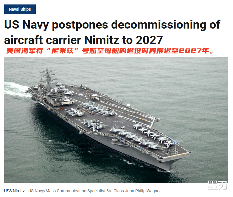 最近美国海军正式宣布,“尼米兹”号航空母舰的退役日期将被延后至少10个月。