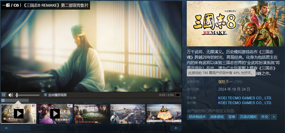 划重点:褒贬不一?《三国志8重制版》 Steam国区定价349元