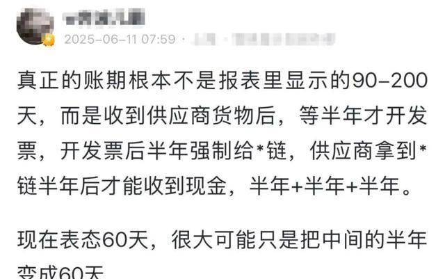 更有供应链内部人士爆料,说车企真正的账期根本不是报表上写的90天、200天,而是收到货后先拖你半年,然后给你开发票,开完票再强制你上“X链”,等你拿到“X链”又得等半年才能拿到现金,算下来,一年半能拿到钱就不错了!