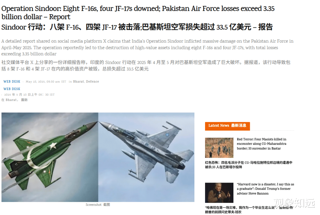 这几天,印度媒体突然发力,并甩出了一份份堪称“史诗级”的胜利战报:印度《新德里电视台》在5月22日率先发布,说印度空军在5月10日的那场空战中,一口气干掉了巴基斯坦8架F-16战斗机,还有4架“枭龙”战斗机,一个晚上就损失了超过33亿美元。