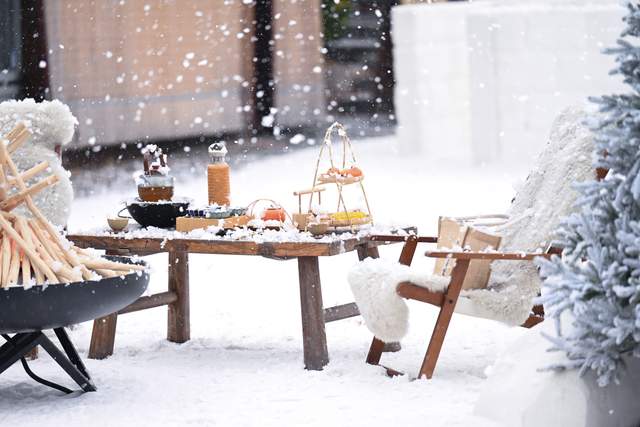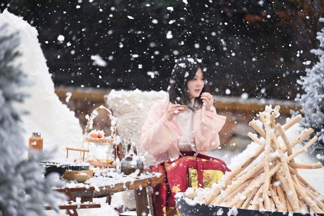 【围炉煮茶 + 雪景 = 冬日治愈天花板】玩雪冷了就冲围炉煮茶!老木桌围炉,烤红薯、橘子、红枣滋滋冒香,热茶冒着热气,窗外是漫天飞雪,室内暖乎乎的,随手拍都是氛围感大片~