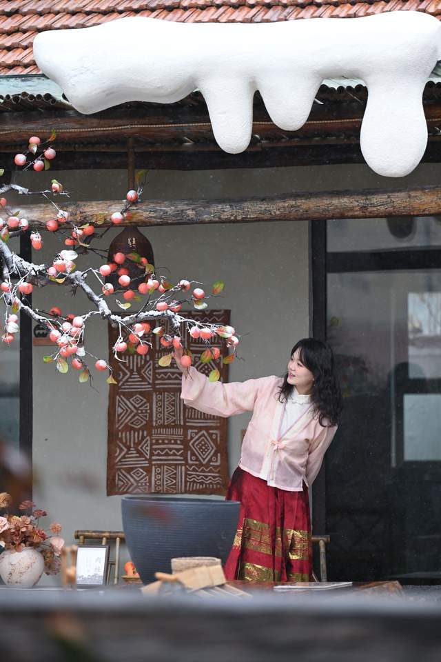 抖音 @瑜上山间汤池养生度假民宿 或小红书 @瑜上仙居民宿 发布雪景打卡照,