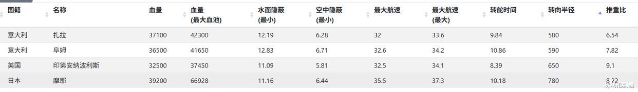 在船体设计上,阜姆对比扎拉更强调机动性。虽然转弯半径多了10m,但在航速、推重比和转向时间上,阜姆都比扎拉更好。不过隐蔽倒是差了一些,可以理解。