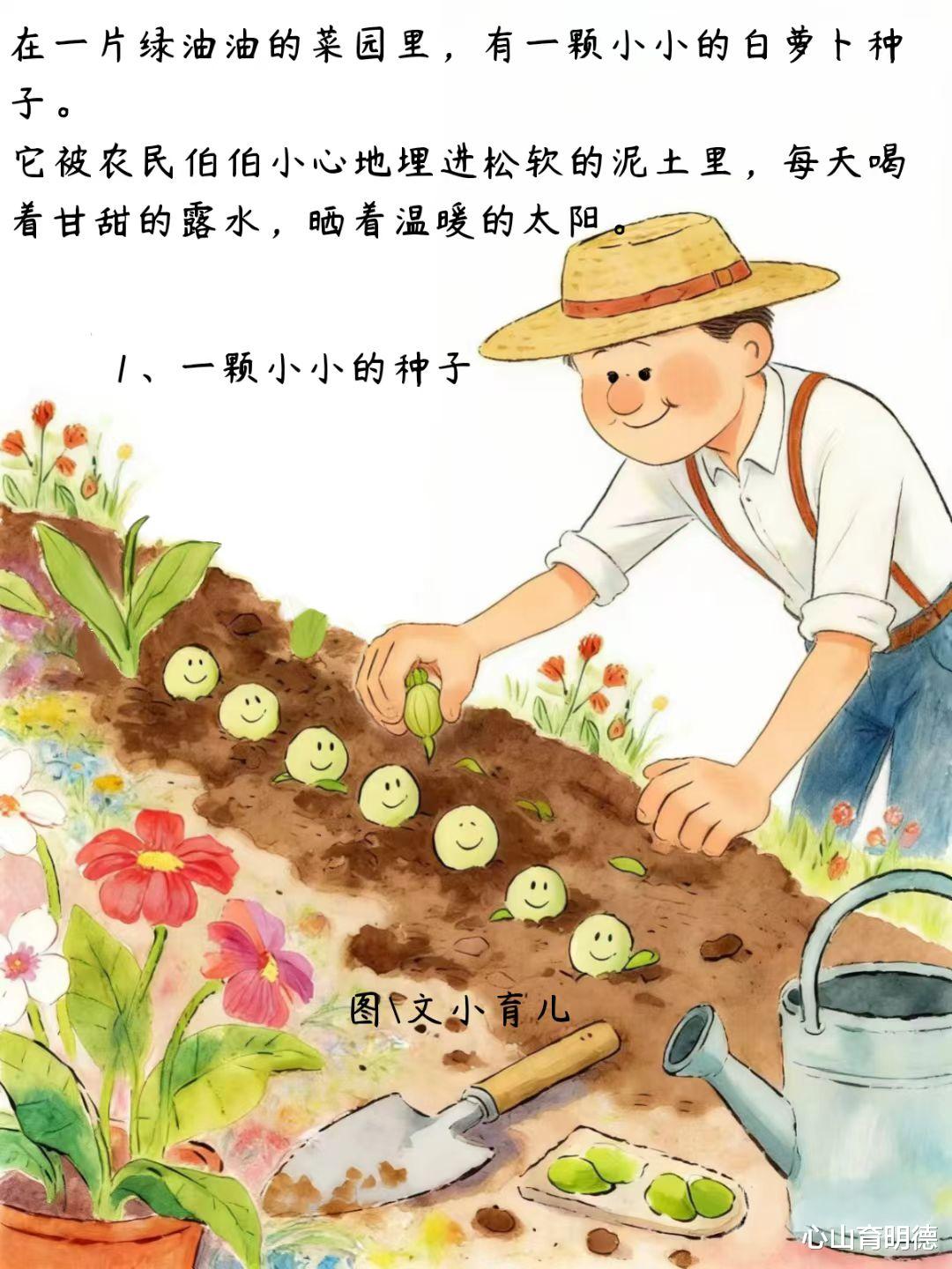 这个充满童趣的手绘故事讲述了一根白萝卜的奇妙历险。
