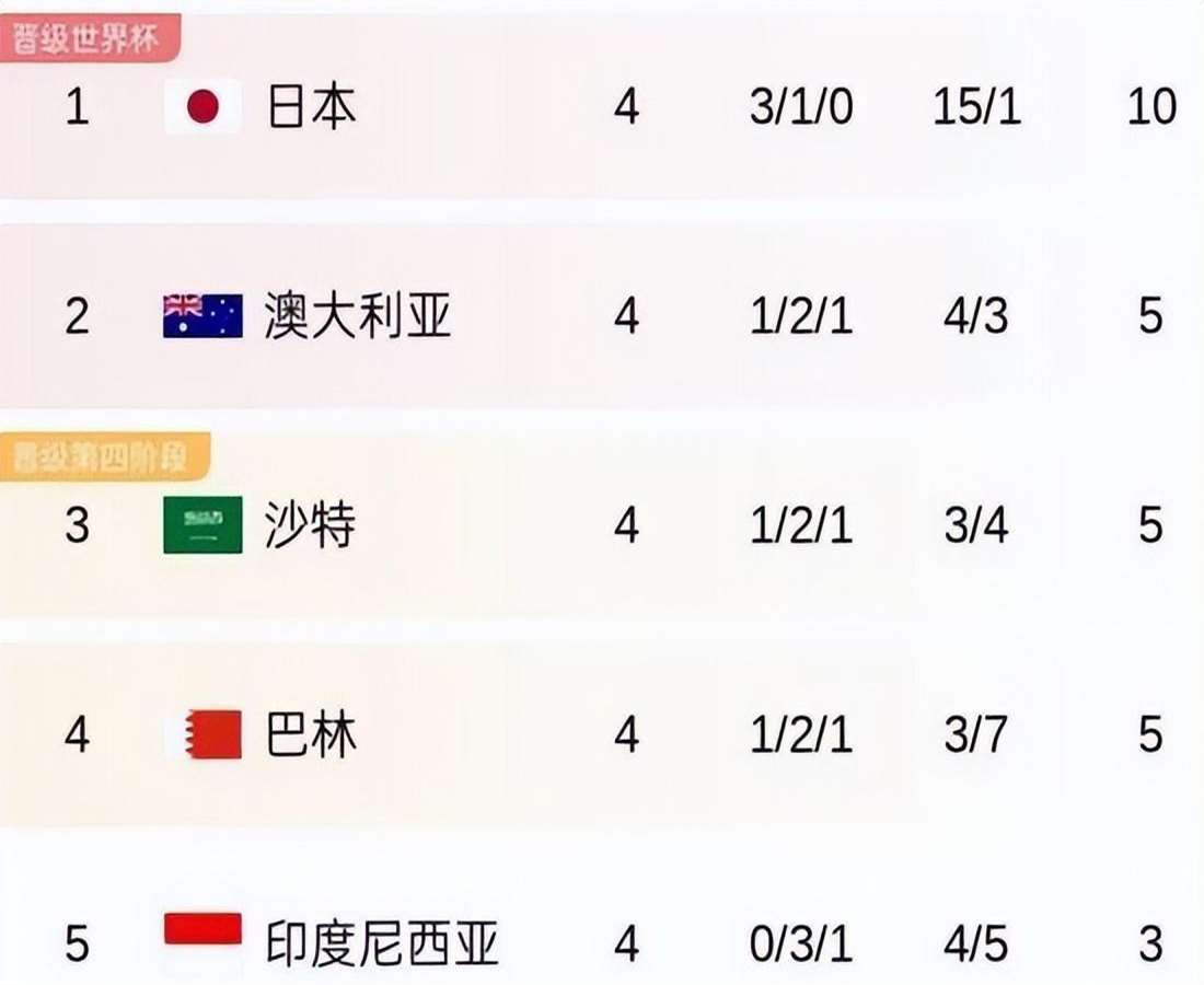 随着比赛的结束,积分榜的形势也发生了微妙变化。日本队依然稳居榜首,遥遥领先。而沙特、巴林和中国队则紧随其后,积分差距微乎其微。此时,任何一场比赛的结果都可能直接影响到出线的前景,悬念愈发浓厚。