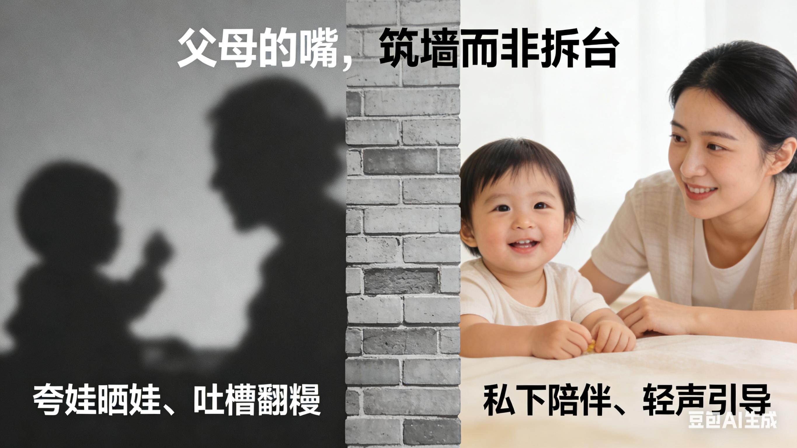 良言一句三冬暖,恶语伤人六月寒,父母的言语,便是孩子成长路上的风水,一言一行,都在潜移默化中影响着孩子的一生。与其在外人面前对孩子评头论足,不如把话语留在私下的相处里,用耐心引导孩子改正不足,用真心鼓励孩子勇敢前行,用全力托举孩子奔赴远方。这份私下里的用心,远比在外的千言万语更有力量,沉默的守护从不是冷漠,而是最温柔的教养,用心的陪伴从不是敷衍,而是最坚实的支撑。父母的嘴,本就该为孩子筑起一道坚不可摧的围墙,挡住外界的风雨与流言,护孩子一路顺遂,而非亲手拆毁这道屏障,让孩子直面世间的纷扰。