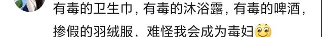 “有毒的卫生巾,有毒的沐浴露,有毒的啤酒,掺假的羽绒服,难怪我会成为毒妇。”