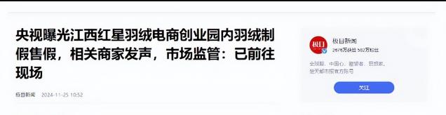 极目新闻——央视曝光江西红星羽绒电商创业园内羽绒服制假造假,相关商家发声,市场监管:已经前往现场 2024年11月25日