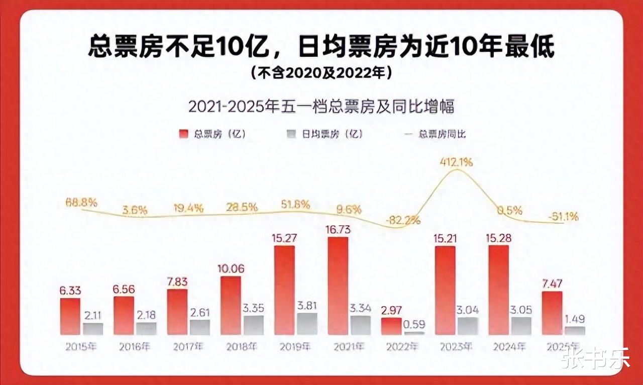 而按照据灯塔专业版数据,2025年五一档,同比去年下滑了51%。