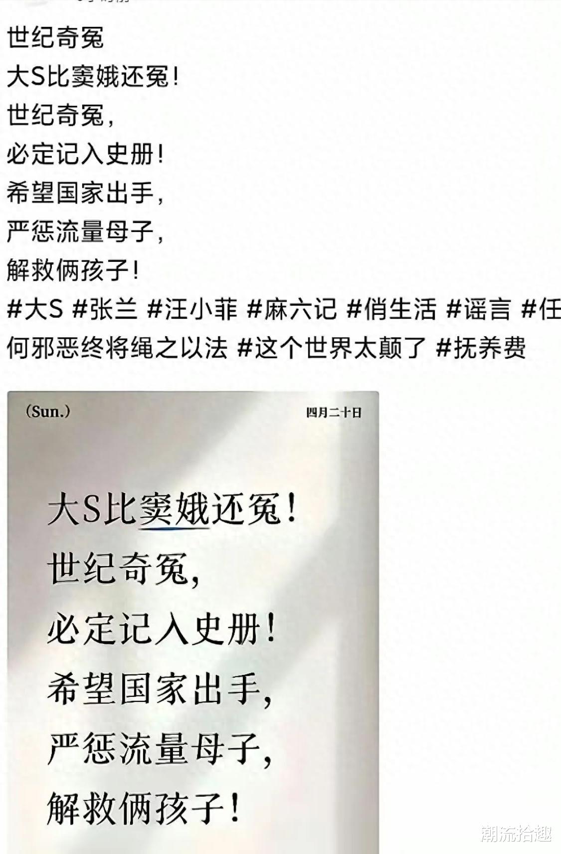 现在出现了一些网友又开启了新一轮的控诉,这次更是直接喊话要求严惩汪小菲和张兰,解救孩子,还说大S比窦娥还冤!