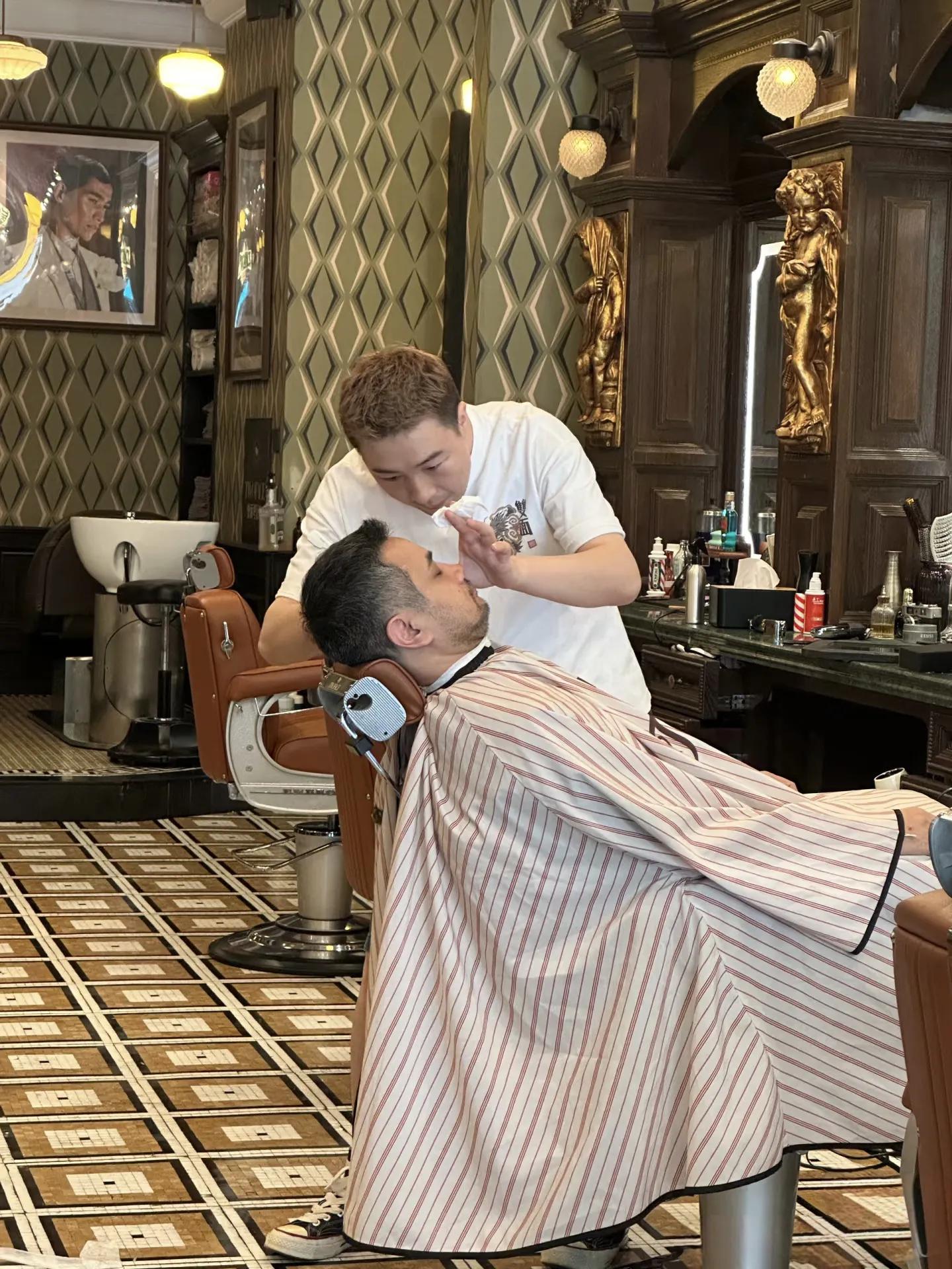有趣的是,这位"洋女婿"在理发店全程用中文和发型师聊天。他说想要个清爽的寸头,还顺便修了修胡子。剪完头发特别满意,乐呵呵地和发型师合影。这接地气的样子,哪像天后的老公,倒像是邻家大叔。