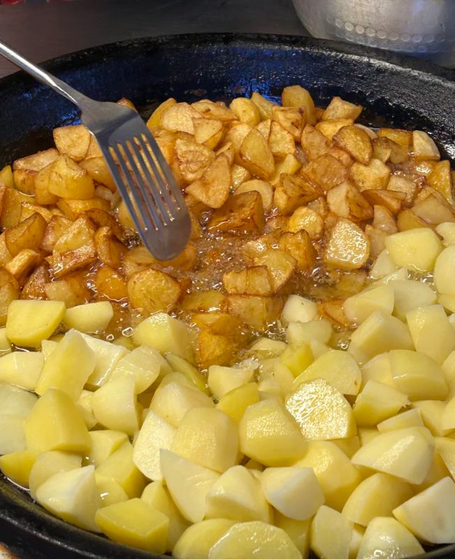 炕土豆的锅最好是厚底的铁锅,油不用多,刚好铺满锅底。土豆倒进去,小火慢慢炕,用锅铲不时翻动,让每一面都均匀受热。听着滋滋的响声,看着土豆表皮渐渐起皱、变黄,最后结成一层脆脆的锅巴,这个过程本身就是一种享受。等土豆全部变成金黄色,用筷子能轻松扎透,就可以出锅了。