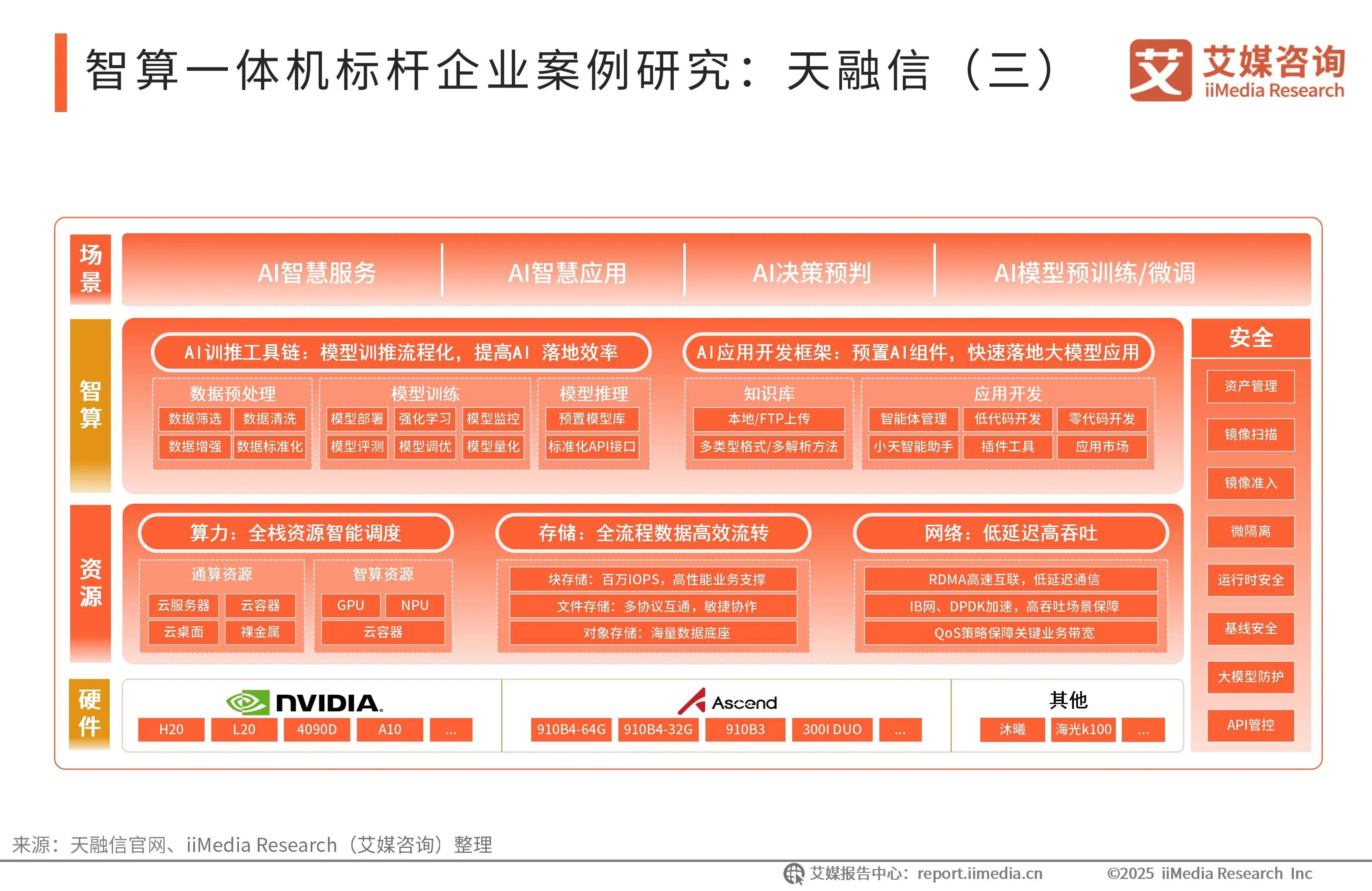 从技术特性看,智算一体机通过本地化部署确保数据主权,避免了公有云场景下的隐私泄露风险。企业可基于自身需求定制模型与硬件配置,例如在金融风控场景中,通过私有化部署大模型实现客户交易数据的本地化处理,同时调用异构算力资源池(如CPU/GPU/NPU)加速模型训练,将响应速度提升40%以上。这一增长背后,既是人工智能技术迭代(如多模态大模型突破)的必然结果,也是政策强监管下企业对数据自主可控需求的集中爆发。