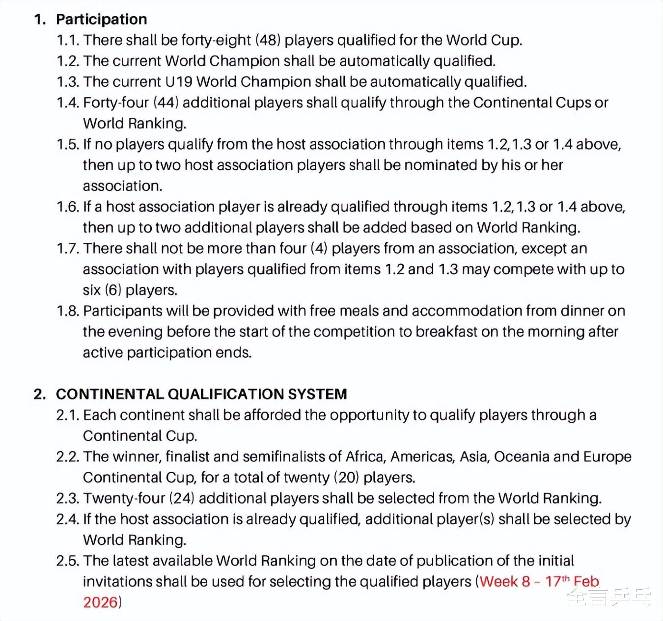 第四,依据世界排名产生24个名额,依据是2026年第8周(2月17日)的积分榜单;