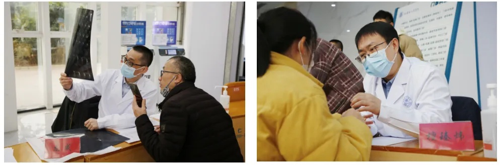 学术交流同时,义诊团队在仁寿县人民医院门诊大厅为老年患者提供免费诊疗服务,用实际行动守护老年人的健康。方跃教授、段鑫教授、王志强教授、檀臻炜教授、蔡礼涛副主任医师、李俊虹副主任护师等为100余名老年患者提供免费诊疗服务。本次义诊活动,义诊涵盖义诊项目涵盖了老年骨折风险排查、各类骨科疾病的诊断与治疗以及康复指导等。