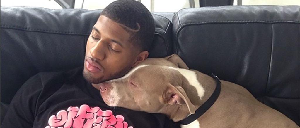 除了家中随处可见的海报外,他还会收藏科比的球衣以及模仿科比的打球动作,以至于后来进入NBA后的乔治还曾身穿24号球衣,甚至连自家的宠物狗都取名为科比。