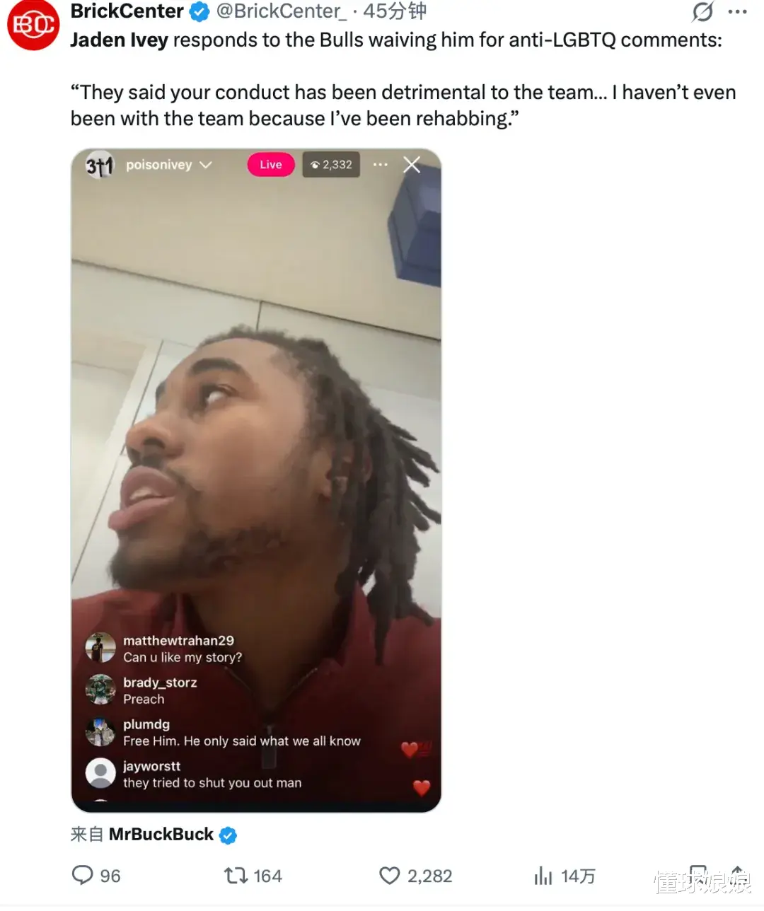 球队官方声明说:“因有损球队的不当行为,球队已裁掉杰登-艾维。”