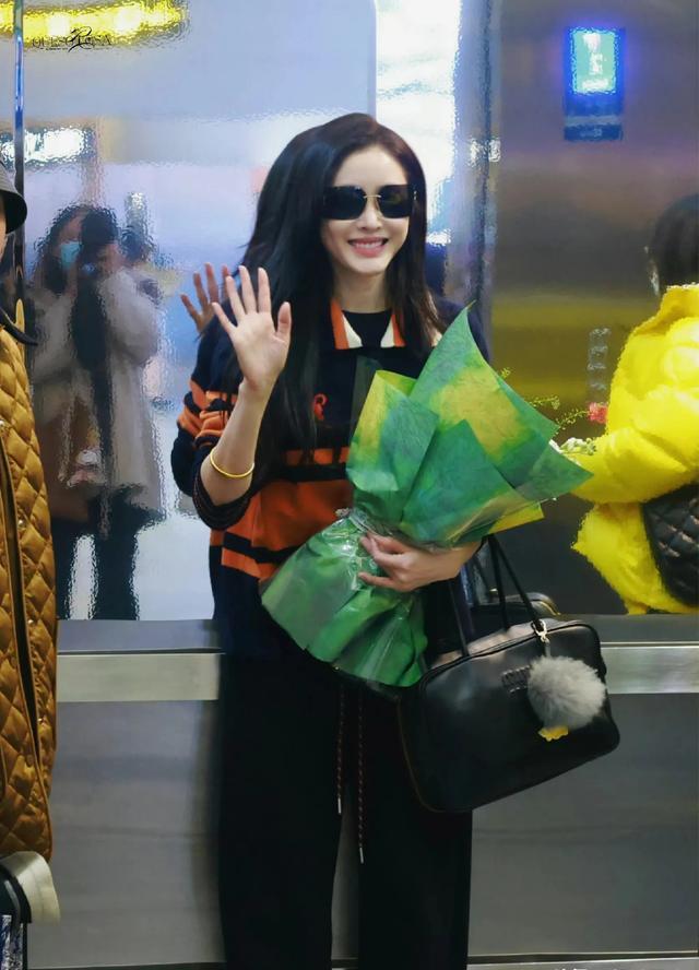 张天爱在狗仔爆料后,高调现身重庆机场,上身穿着黑色和橙色的撞色毛衣,下身穿着黑色宽松休闲裤,脸上戴着墨镜,整个人状态非常好,走路也很快。