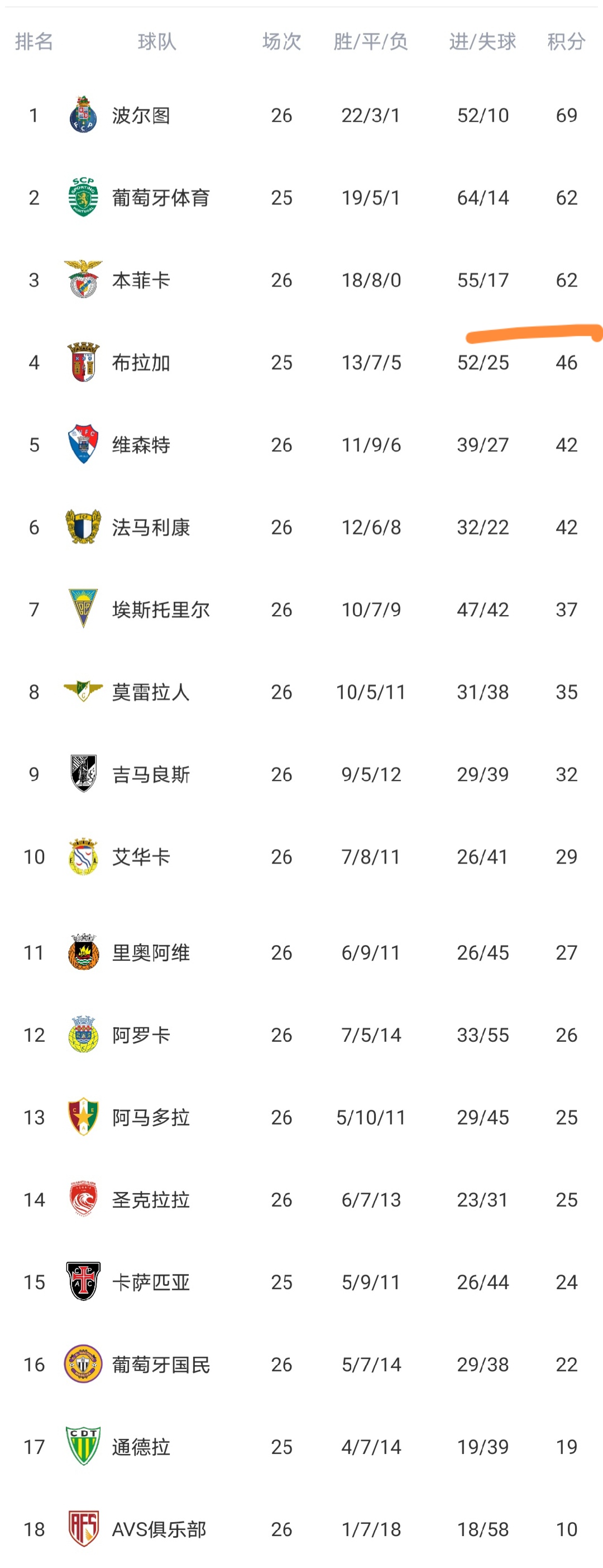 最终波尔图完胜莫雷拉人。赛后波尔图积69分继续领跑,领先第3的本菲卡队7分。