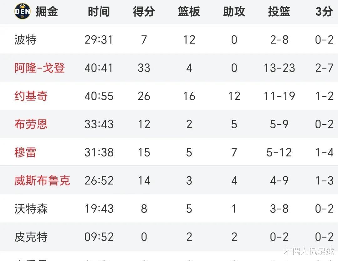 最终,掘金队以117比109逆转战胜灰熊队,完成了令人难以置信的翻盘。约基奇拿下26分16篮板12助攻的三双数据,再一次展现了他的全能身手,这也是他本赛季的又一场三双,继续巩固着他作为联盟顶级中锋的地位。戈登则砍下全场最高的33分,成为掘金队获胜的最大功臣。穆雷也多次得分,为球队提供了重要的火力支持。威少也贡献了14分3篮板4助攻的数据,掘金队五人得分上双,展现了强大的团队实力。灰熊队方面,莫兰特得到21分6助攻,贝恩拿下24分6篮板,虽然灰熊队也有五人得分上双,但关键时刻的进攻效率却不如掘金队。