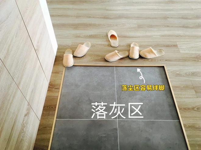 10cm的落尘区太高了,很多朋友便开始降低高度差,把落尘区的地面差缩短到3cm,这样的设计看似改善了层高问题,其实也消弱了落尘区的实际功能。