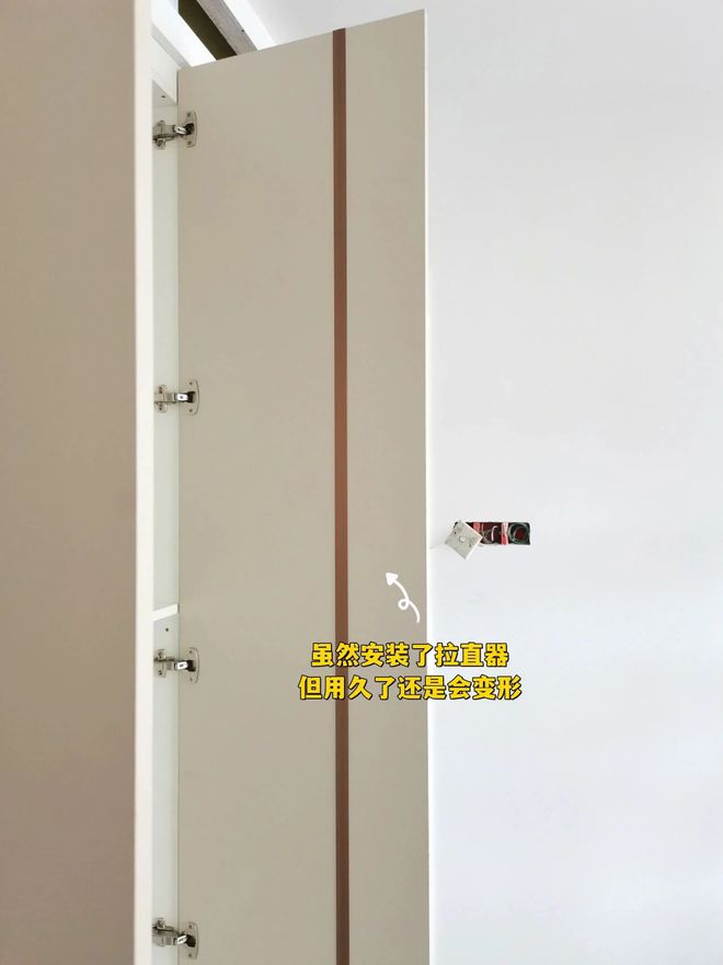 柜门超过了1.5米,就需要在内部固定拉直器,虽然能从一定程度上缓解柜门变形的问题,但是用时间长了,柜门还是会出现问题,到时候门可能就关不上了。