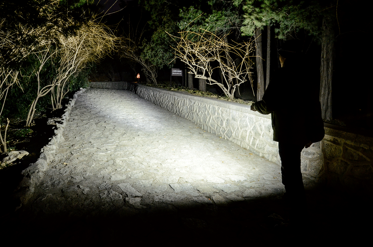组合起来就是1550lm光通量的远范兼顾照明效果,说句实话,从户外爬山的实际效果来讲,不输两三千多流明小直手电,而且远泛兼顾,由近及远是连贯的亮度,可视性非常好。