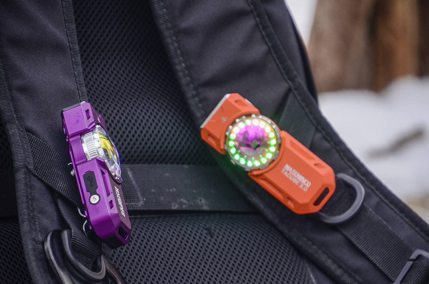我出去户外徒步或者爬山,就把TACUBE 3.0 夹在背包的MOLLE带上,成为随身的提示神器,而且随手就能拿下来使用,确实很方便实用。