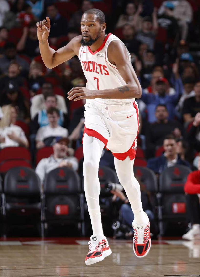 次节杜兰特的个人进攻也受到限制单节4中2拿到5分1助攻2抢断,半场拿到16分,小贾半场13分,球队核心申京半场18分钟只拿到3分,阿门半场也只拿到4分,双核状态低迷的情况下半场火箭也落后到两位数。