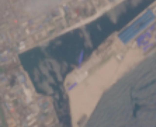 而目前的最新卫星照片,则来自于5月26日西方商业卫星公司拍摄的卫片,26日的卫片分辨率不高,但是却让人心凉了半截。这张卫星照片应该是在清津港港池落潮的时候拍摄的。