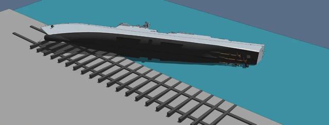 而拖到水里,你谁敢打这个包票这船入水之后,不会继续进水翻覆?谁也保证不了吧。而一半在岸上一半在水里,介质不同导致介质分界线部分的船体,受到的应力最大,现在还要考虑到高潮位低潮位因素,带来的舰体垂直位移度……这又是一个这船哪怕全都在岸上、或者全都在水里都不需要考虑的因素,结果现在成了“崔贤”级二号舰最大的不确定性因素。