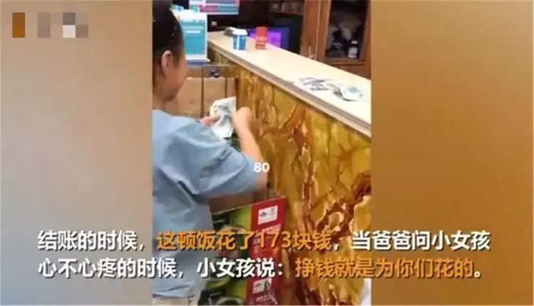 然后,父亲询问她:“180块只剩下7块了,心疼不?”
