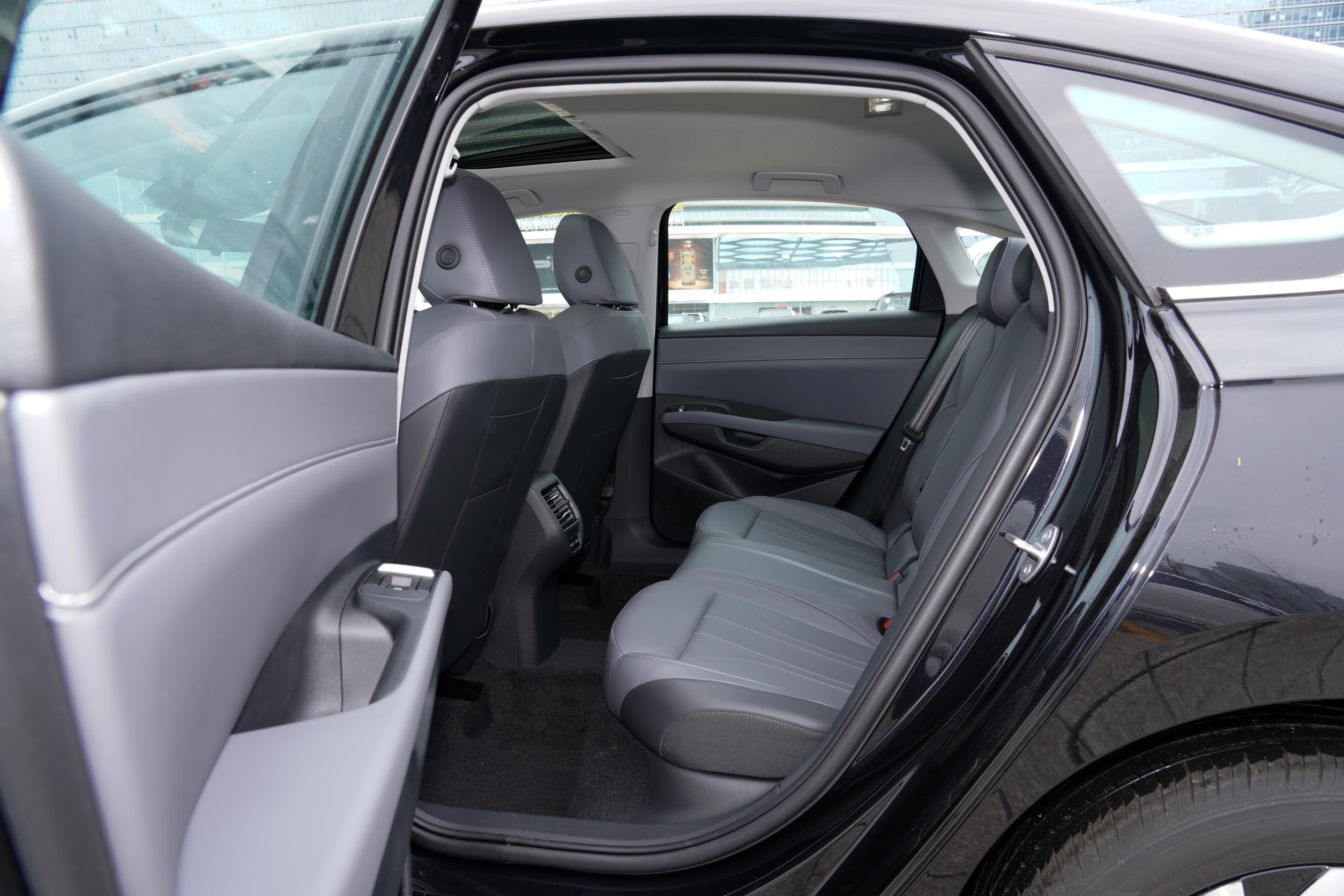因为车身尺寸进行了加长,所以车内的空间也得到了提升,身高178厘米的男生坐在后排,腿部空间有两拳半左右的距离,头部空间有一拳左右的距离,后排座椅的坐垫整体向外延伸,具有很好的支撑性,搭配独立的空调出风口和天窗设计,提升了乘坐舒适性,即使长时间乘坐也不会感到压抑。