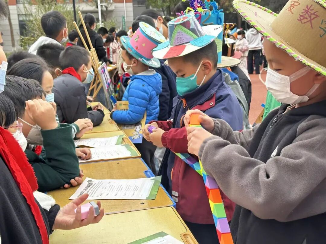 学科节期间,各年级开展了主题鲜明、创意十足的项目式学习,让数学知识与美术、文学、手工深度融合,成果斐然:童“画”数学,一年级小朋友将抽象数字融入童话连环画与手工作品,萌趣十足;拼贴智慧,二年级学子以“图形里的奇思妙想”,用基本平面图形构建出一个个多彩的世界。
