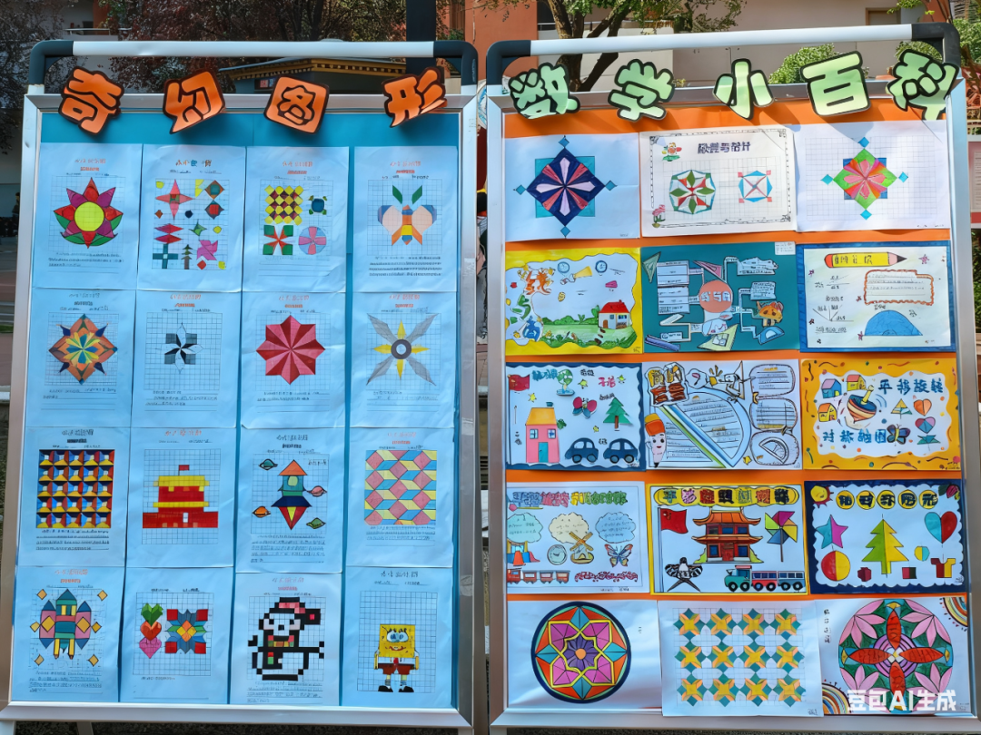 创意赋能,五年级学生主导“数学节标徽设计”,将数学符号与艺术设计完美结合,彰显活动精神;“数”承文脉,六年级学子“数绘传统”,通过数学小报与立体书,探秘传统文化中的数学智慧,实现跨学科融合。