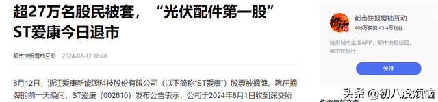 超27万名股民被套,“光伏配件第一股” ST爱康今日退市——都市快报橙柿互动2024-08-12