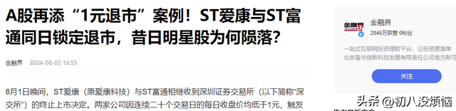 A股再添“1元退市”案例!ST爱康与ST富通同日锁定退市,昔日明星股为何陨落?——金融界2024-08-02