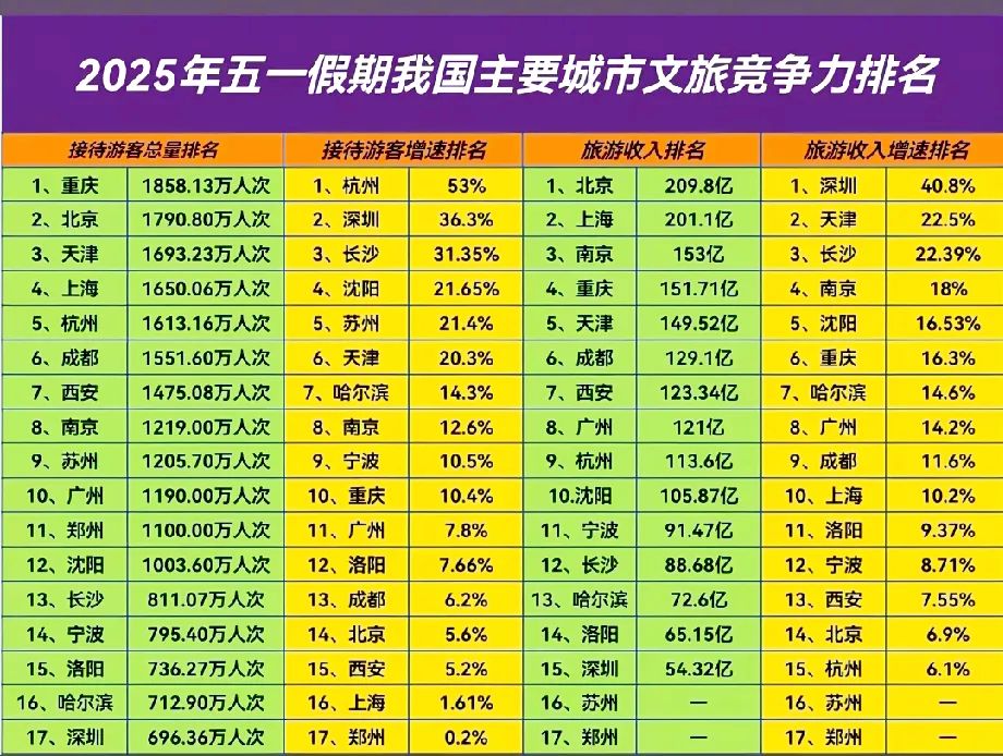 这份五一旅游榜单,不仅是一组数字,更是一面反映城市竞争力与旅游消费趋势的镜子。