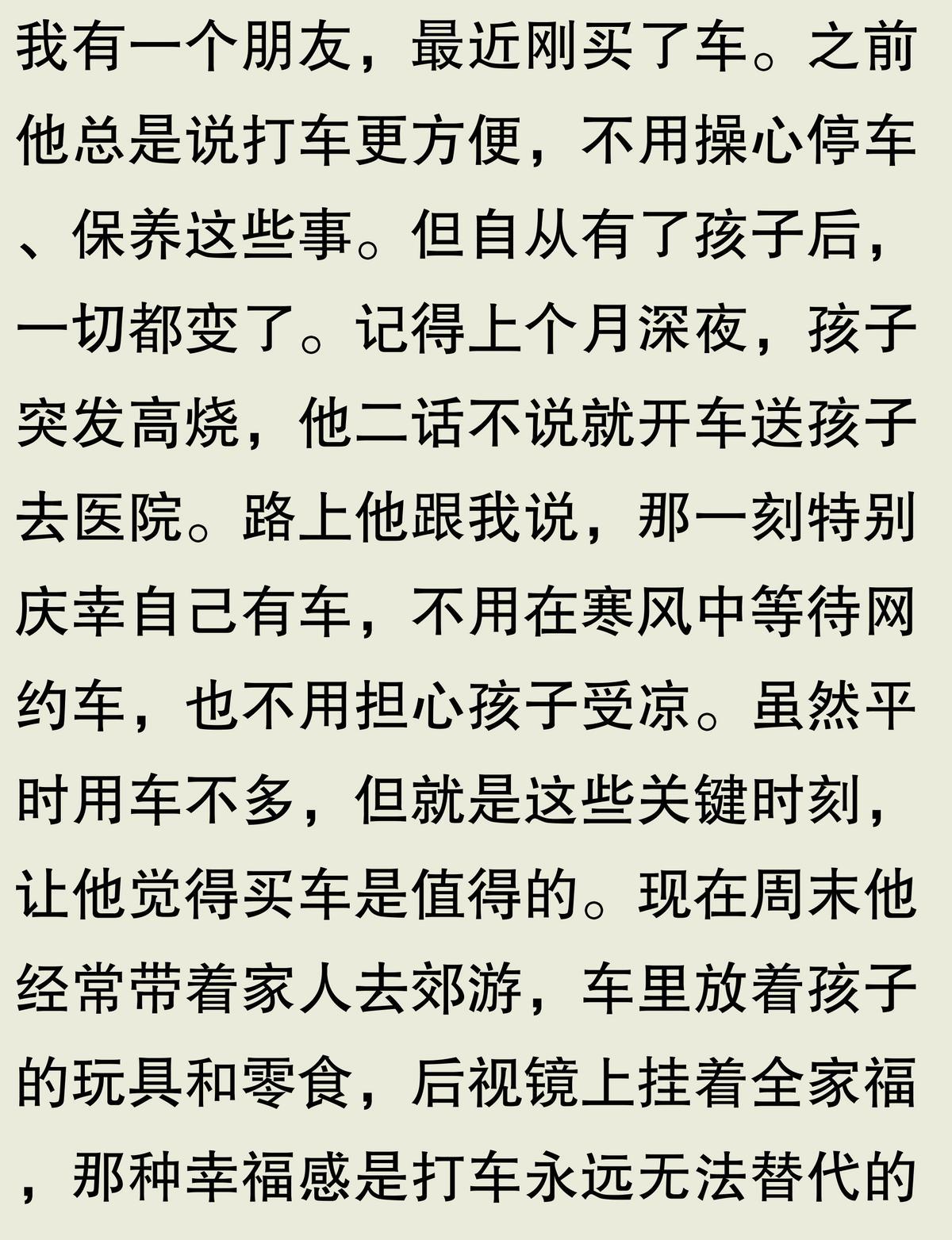 最后,让我们回到最开始的问题:你真的需要一辆车吗? 这并不是一个简单的“是”或“否”的问题,而是一个需要我们根据自身情况,认真权衡利弊,做出理性选择的难题。 我们不能盲目跟风,也不能被消费主义裹挟, 应该根据自己的实际需求、经济状况和价值观做出选择。 记住,幸福不是用钱来衡量的,而是来自生活的平衡与满足。