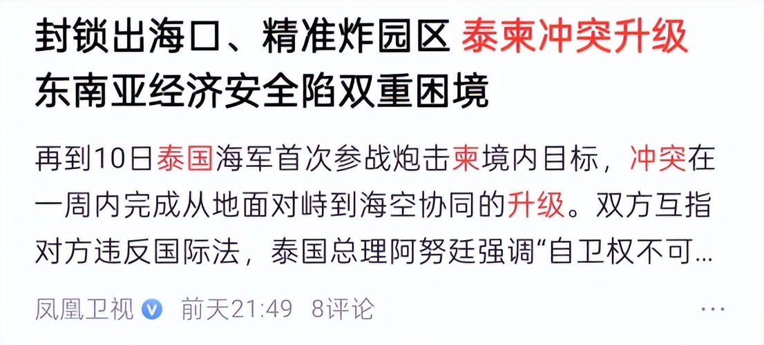 参考资料:1、凤凰卫视:封锁出海口、精准炸园区 泰柬冲突升级 东南亚经济安全陷双重困境2、极目新闻:泰柬冲突持续一周,数十万人流离失所,泰柬为何难以实现和解?