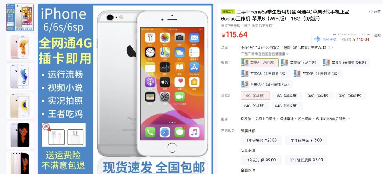 但这一次,iPhone 6的价格令人咋舌——闲鱼平台仅需数十元,京东二手平台也就170到300元。
