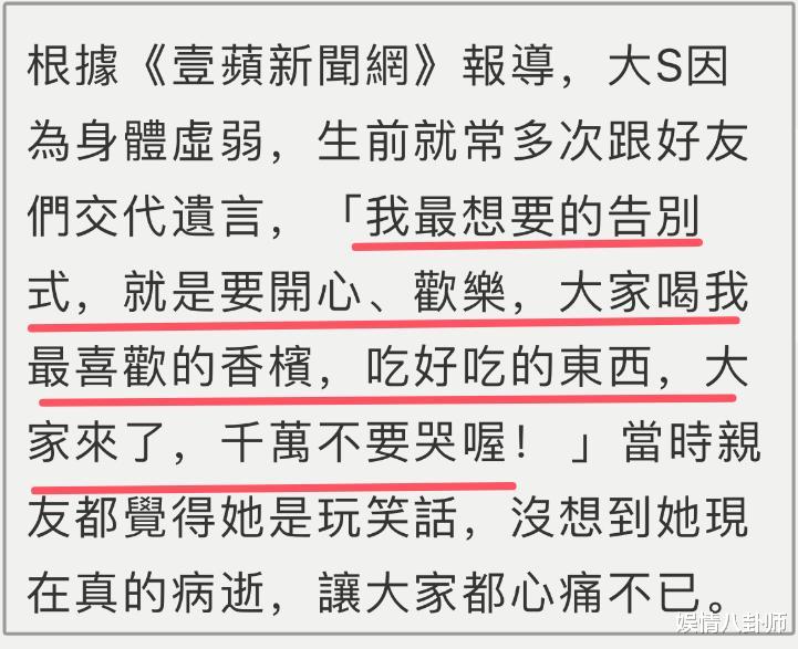 然而,在悲痛之余,台媒的一则爆料却让人对大S的离世有了更多的思考。