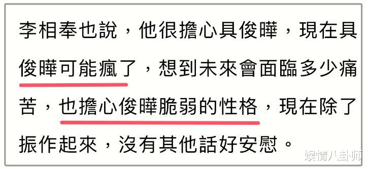 另一好友李相奉也表示,具俊晔可能已经疯了。他透露具俊晔的性格十分软弱,恐怕难以承受失去爱妻的痛苦。言语之间,透露出对具俊晔深深的担忧。甚至有人怀疑,具俊晔是否会因为过度悲伤而做出什么傻事。